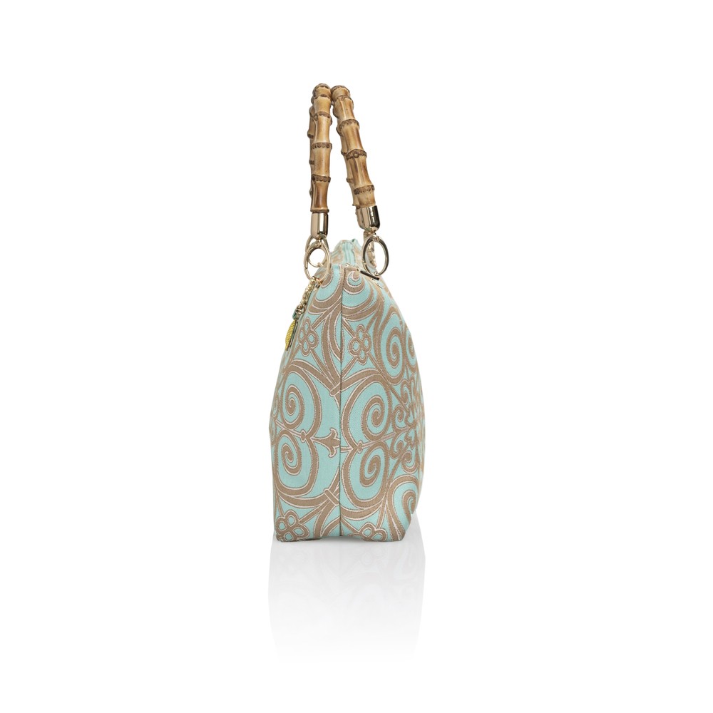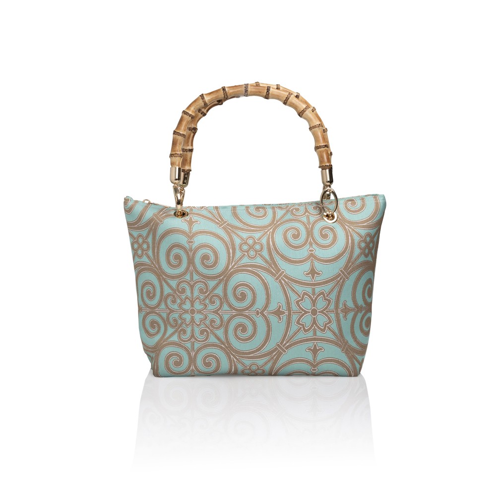 Borsa in seta di San Leucio con manici in bamboo - Grande Verde