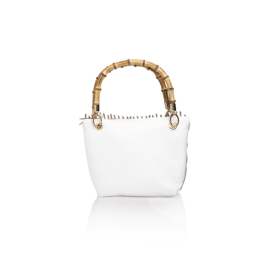 Borsa in merletto italiano con manici in bamboo - Media Beige