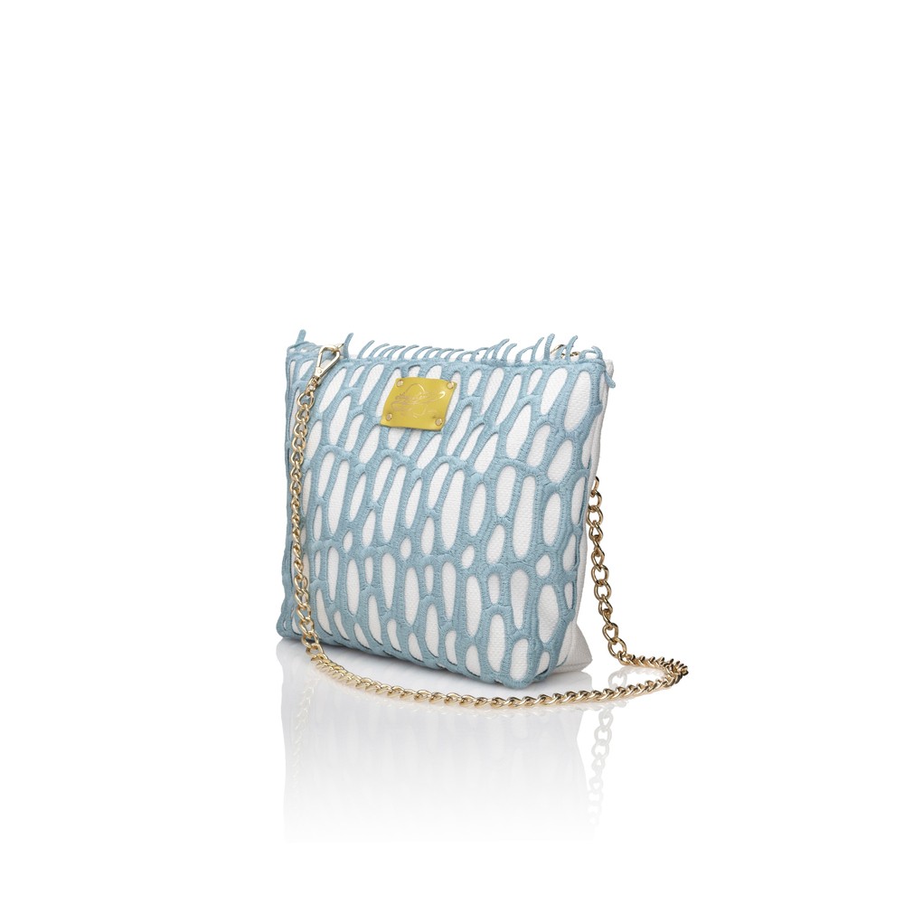 Borsa in merletto italiano con catena - Media Celeste